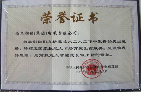 酒鋼集團(tuán)榮獲國家技能人才培育突出貢獻(xiàn)獎