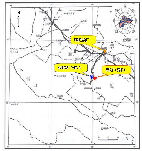 項目概況:鏡鐵山鐵礦是酒鋼最主要的鐵礦石原料基地,其地處甘肅省肅南裕固族自治縣祁豐鄉(xiāng)鏡內(nèi),位于東經(jīng)98°03′,北緯39°22′,東北直距酒泉鋼鐵公司所在地嘉峪關(guān)約55km,有鐵、公路相通,鐵路全程78km,公路計程138km,交通運輸方便。地理位置如下圖所示。