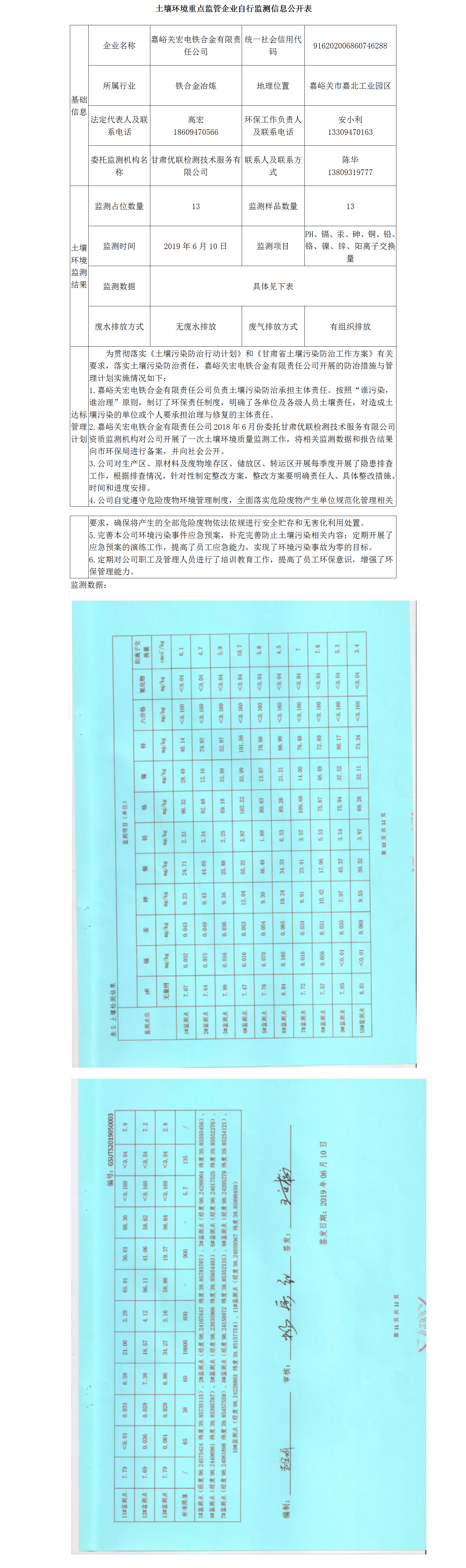 嘉峪關(guān)宏電鐵合金有限責(zé)任公司2019年土壤環(huán)境重點(diǎn)監(jiān)管企業(yè)自行監(jiān)測(cè)信息公開(kāi)表