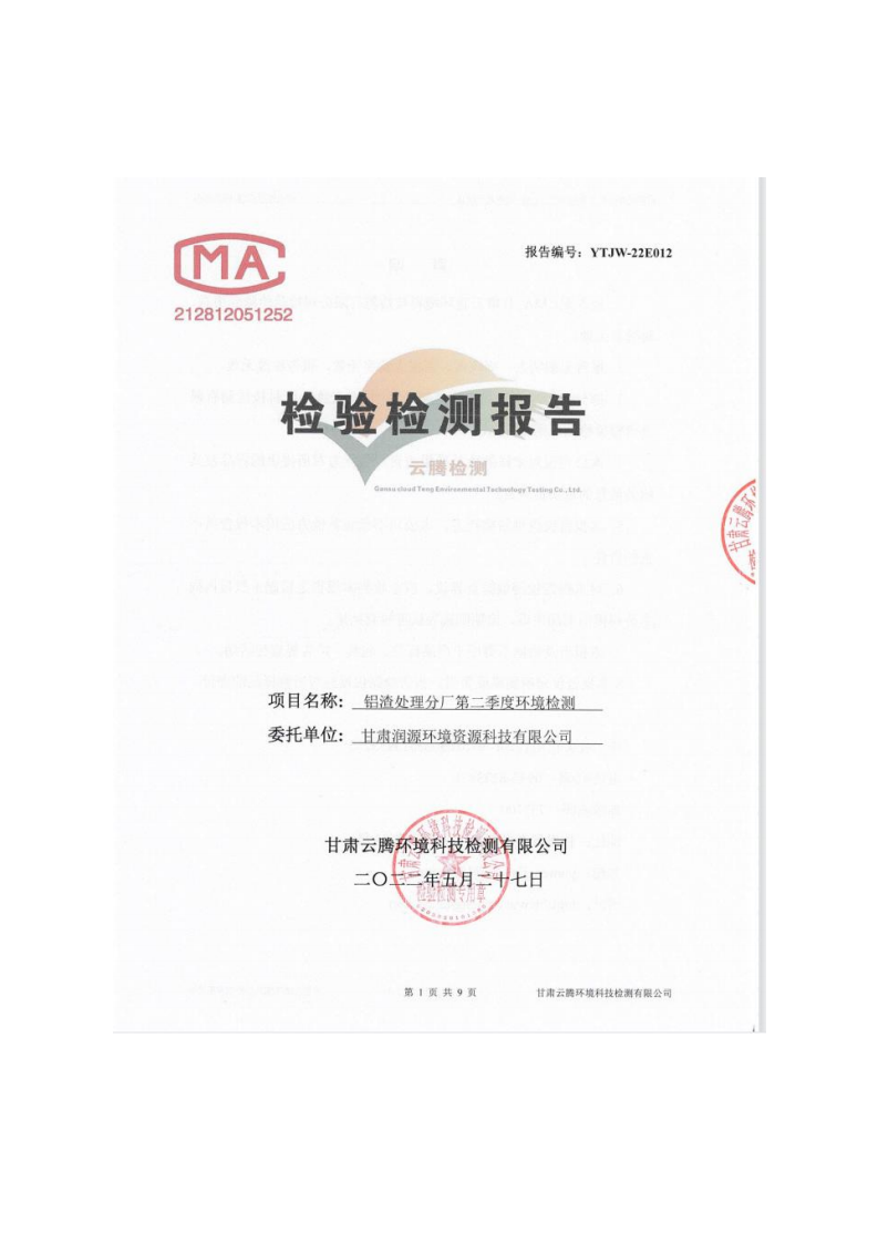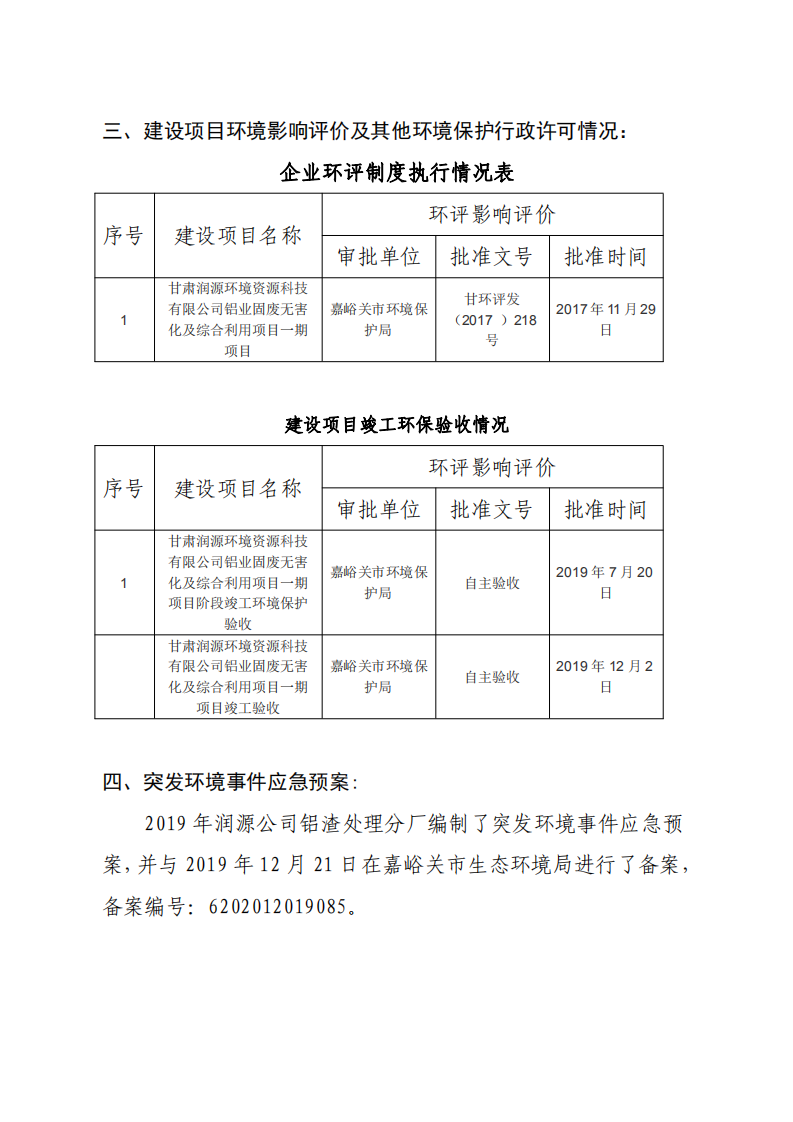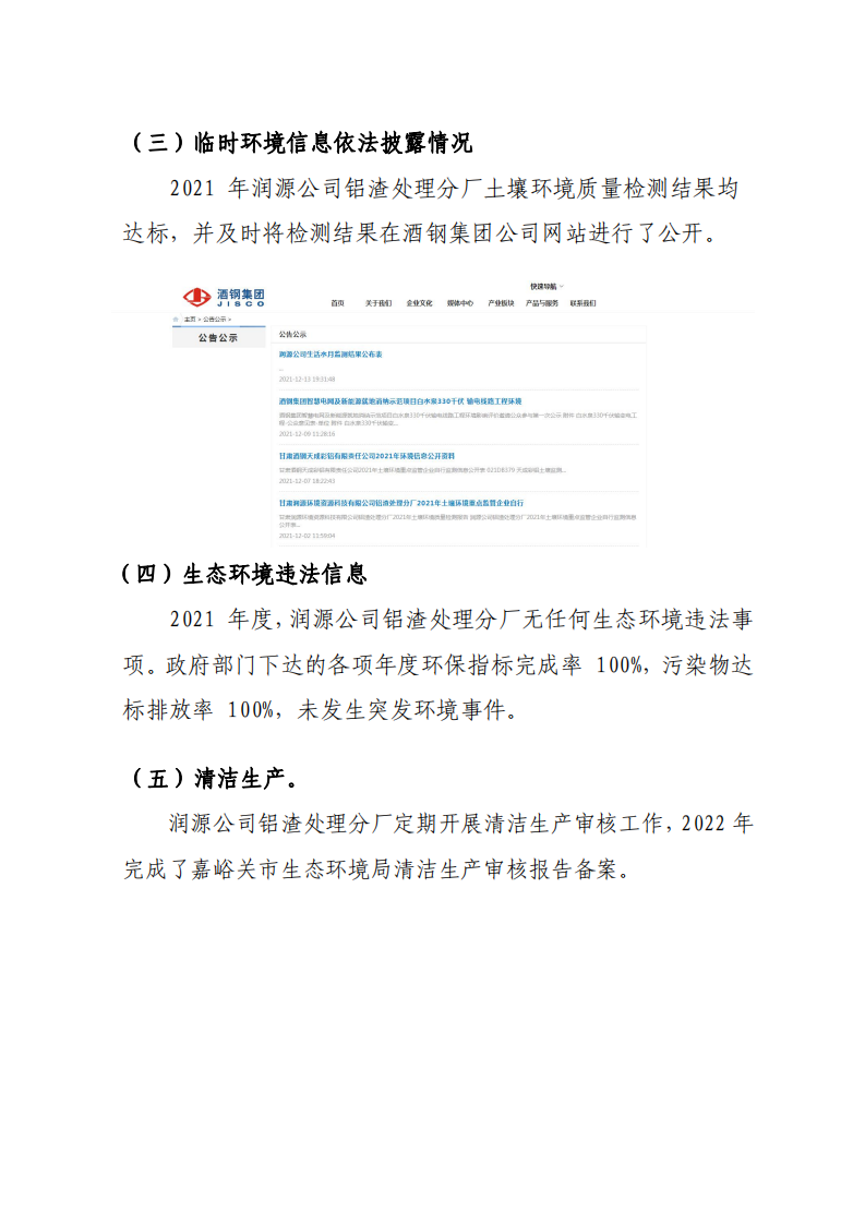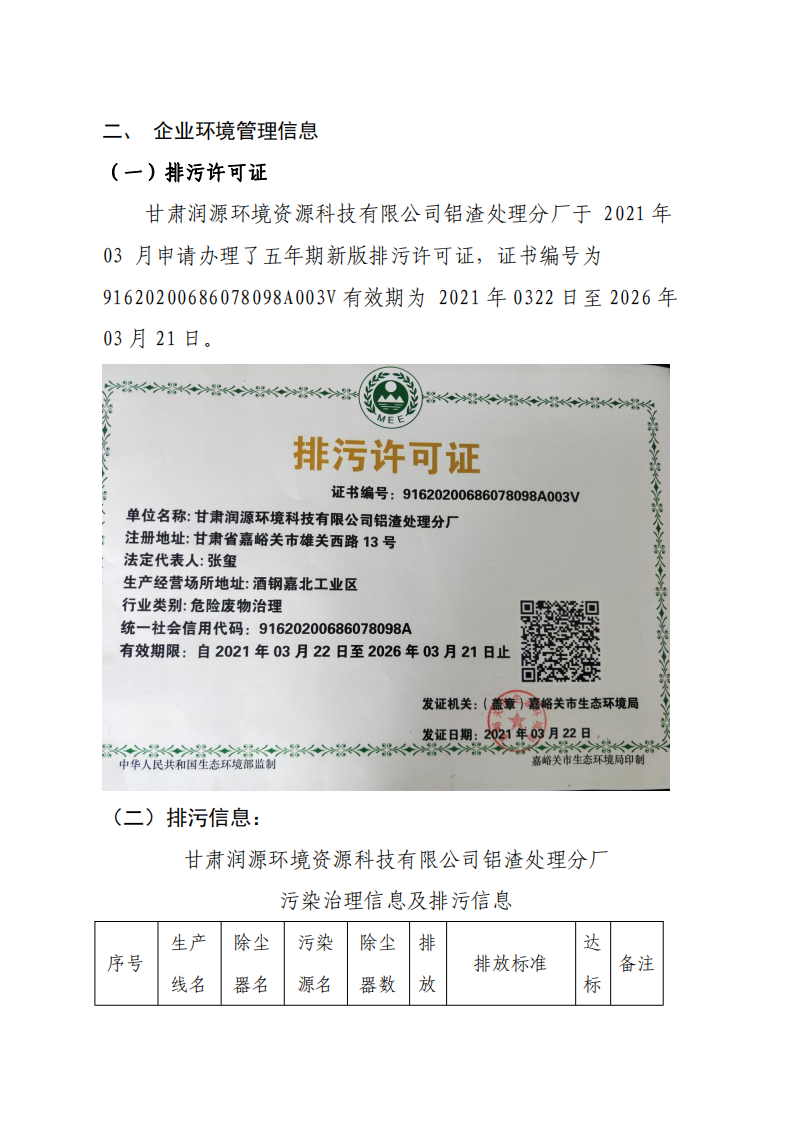 甘肅潤源環(huán)境資源科技有限公司鋁渣處理分廠2022年環(huán)境信息公開