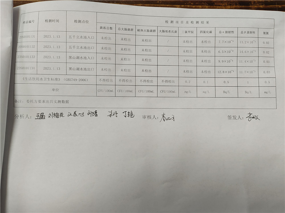 甘肅潤源環(huán)境資源科技有限公司水源地水質(zhì)2023年第一季度公示
