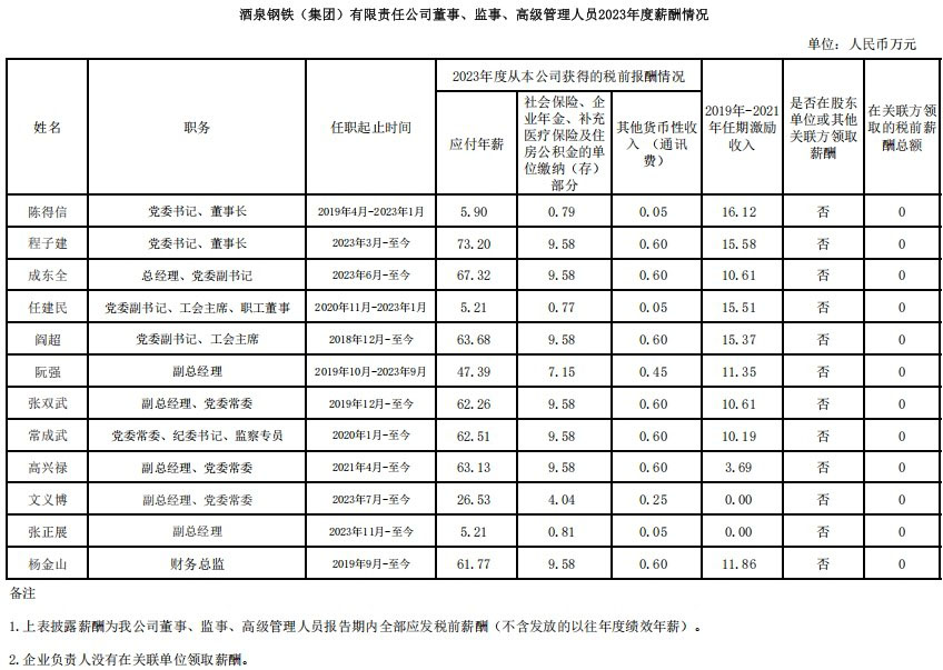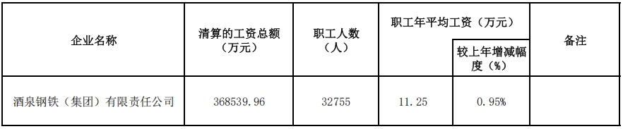 酒泉鋼鐵(集團(tuán))有限責(zé)任公司2023年工資分配信息披露