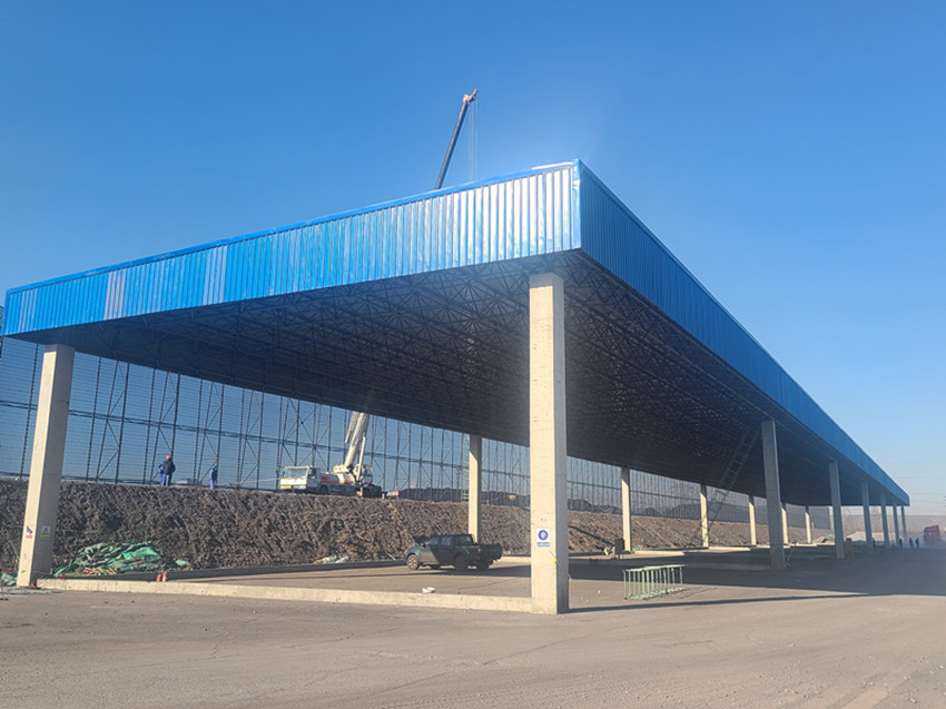 螢石料場料棚全面安裝完成