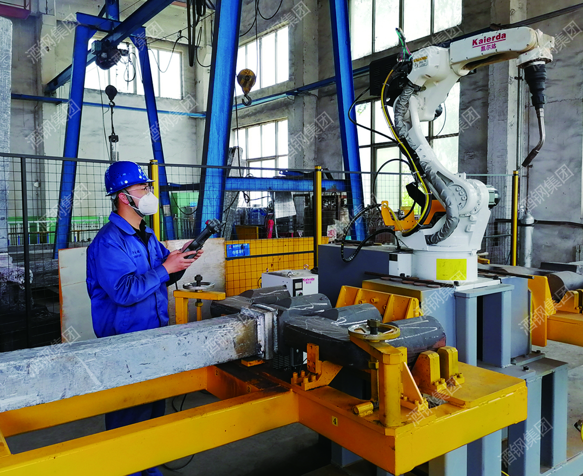 近日,由信息自動(dòng)化分公司承建的隴西陽極鋼爪自動(dòng)焊接機(jī)器人系統(tǒng)上線運(yùn)行。該系統(tǒng)由兩臺(tái)KR1440機(jī)器人及切割模塊、焊接模塊組成,可代替人工自動(dòng)完成待修鋼梁鋼爪切割、利廢鋼爪焊接、爆炸焊塊與新鋼梁的鋼鋼焊接,提高車間裝備智能化水平、降低勞動(dòng)強(qiáng)度、提高工作效率。 陳玖德 于永瑞 攝